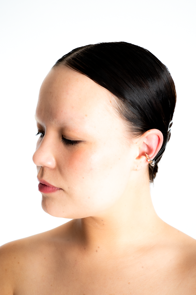 Worn on the ear, the M Valley Arch curves like a suspended bridge between digital and physical worlds, echoing the transient nature of connection. More than a piece of jewellery, it holds Alvin’s emotions—his silent goodbye, his lingering presence, and the unspoken bond that remains even in parting.