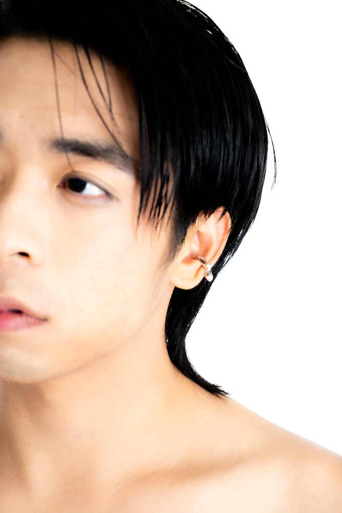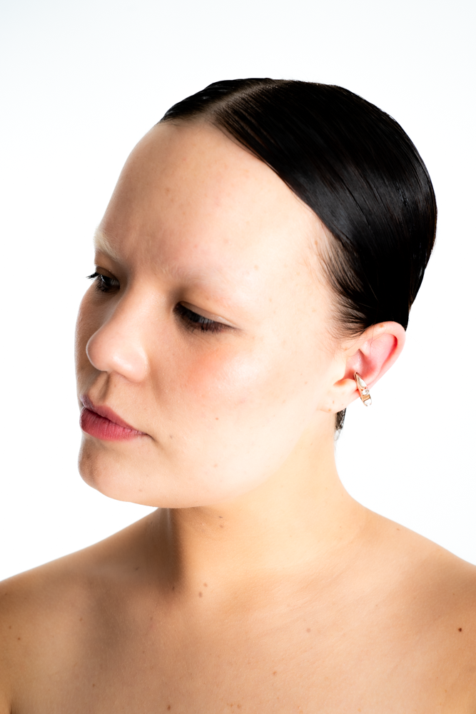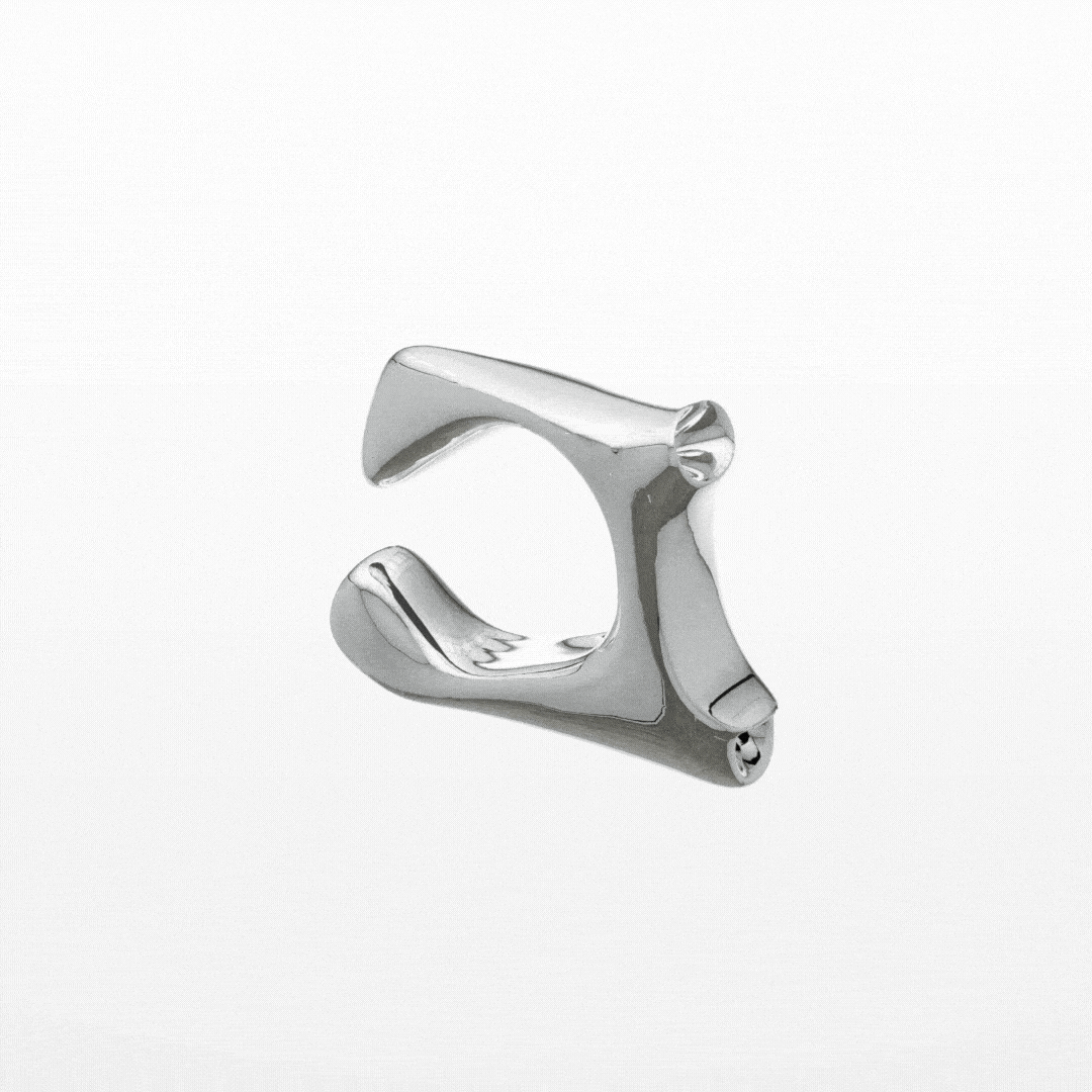 The M Valley Arch ear cuff is a sculptural form born from a celestial discovery in the digital world of M Valley. Inspired by a mysterious arc found in the sky—an ever-shifting structure of energy—it connects the world’s galaxy in constant rotation. This form is first seen by the Octopus Teacher, a digital monster and guide to Alvin, who recognises it as a distorted echo of nature, alive and in motion.