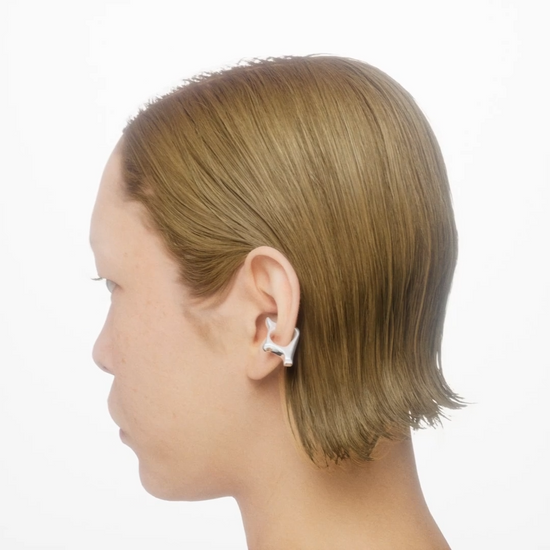 The ear cuffs are worn around the ear, their sweeping, organically growing shapes resemble a suspended bridge between the digital and physical worlds, echoing both the digital world and physical nature. More than wearable art pieces, each piece holds Alvin and Jane’s memories and emotions, their desires, their dreams, and the uncertainty of their future.