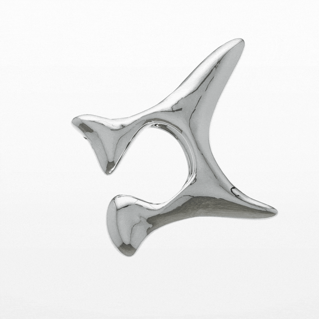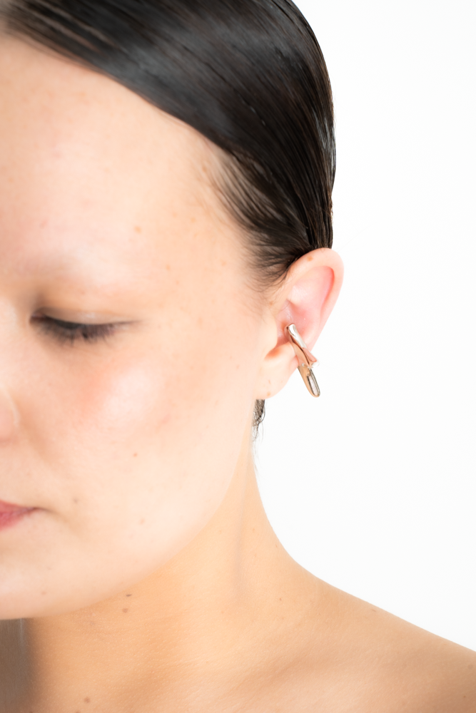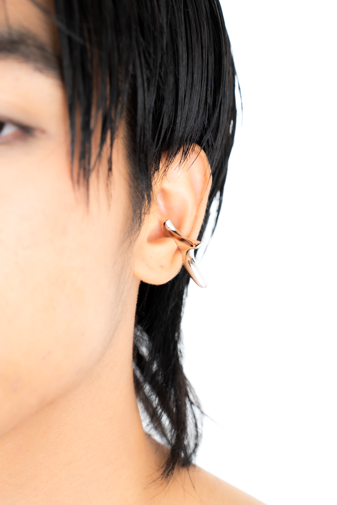 The M Valley Arch ear cuff is a sculptural form born from a celestial discovery in the digital world of M Valley. Inspired by a mysterious arc found in the sky—an ever-shifting structure of energy—it connects the world’s galaxy in constant rotation. This form is first seen by the Octopus Teacher, a digital monster and guide to Alvin, who recognises it as a distorted echo of nature, alive and in motion.