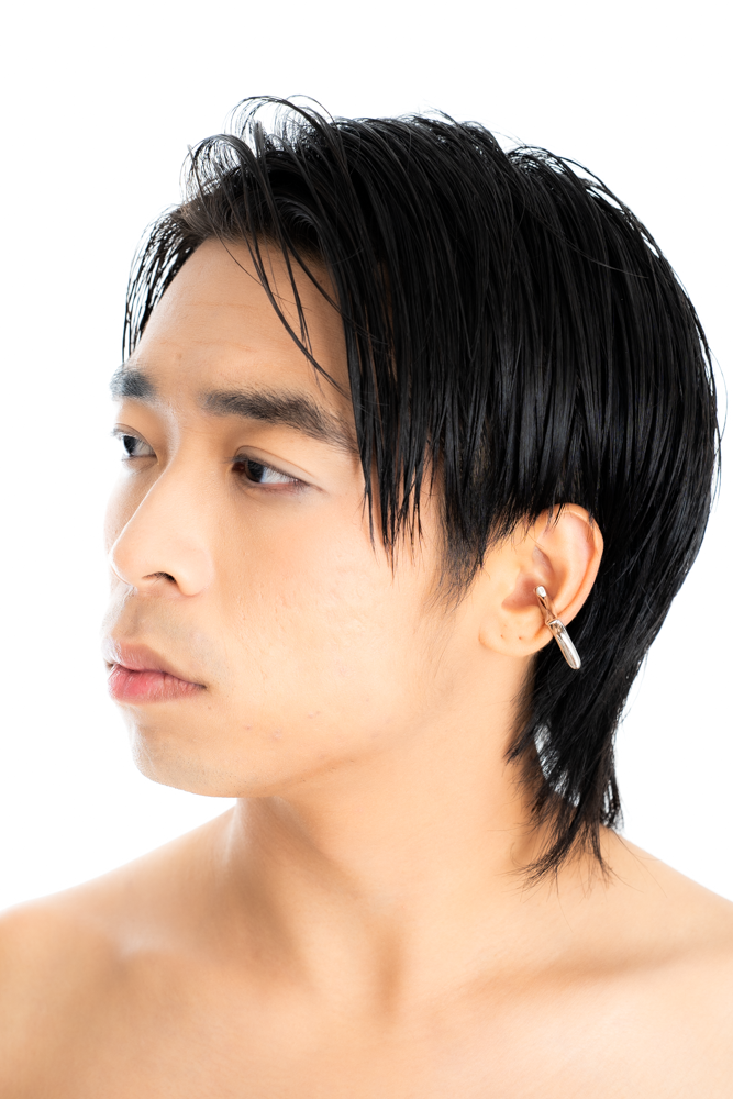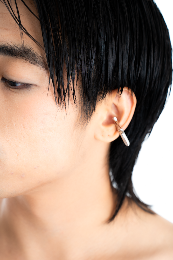 Worn on the ear, the M Valley Arch curves like a suspended bridge between digital and physical worlds, echoing the transient nature of connection. More than a piece of jewellery, it holds Alvin’s emotions—his silent goodbye, his lingering presence, and the unspoken bond that remains even in parting.