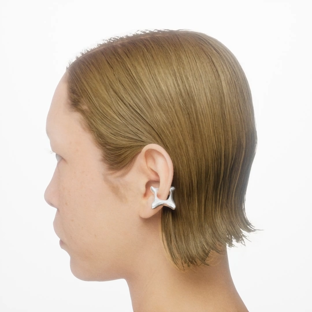 The Ear Cuff Series is a sculptural form inspired by the arcs in M Valley, a hidden digital world that Alvin first discovered deep in the forest during one of his 3D-scanning sessions. After accidentally falling through a portal, he found himself in M Valley, where arcs can be seen in the landscape. These arcs act as wayfinders, allowing anyone in M Valley to locate the M Gallery from far away. Even the digital creatures, like the Octopus Teacher, pass through these arcs as they navigate the world.