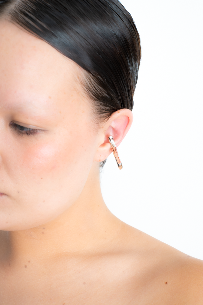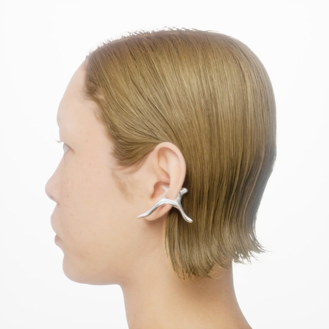 The M Valley Arch ear cuff is a sculptural form born from a celestial discovery in the digital world of M Valley. Inspired by a mysterious arc found in the sky—an ever-shifting structure of energy—it connects the world’s galaxy in constant rotation. This form is first seen by the Octopus Teacher, a digital monster and guide to Alvin, who recognises it as a distorted echo of nature, alive and in motion.