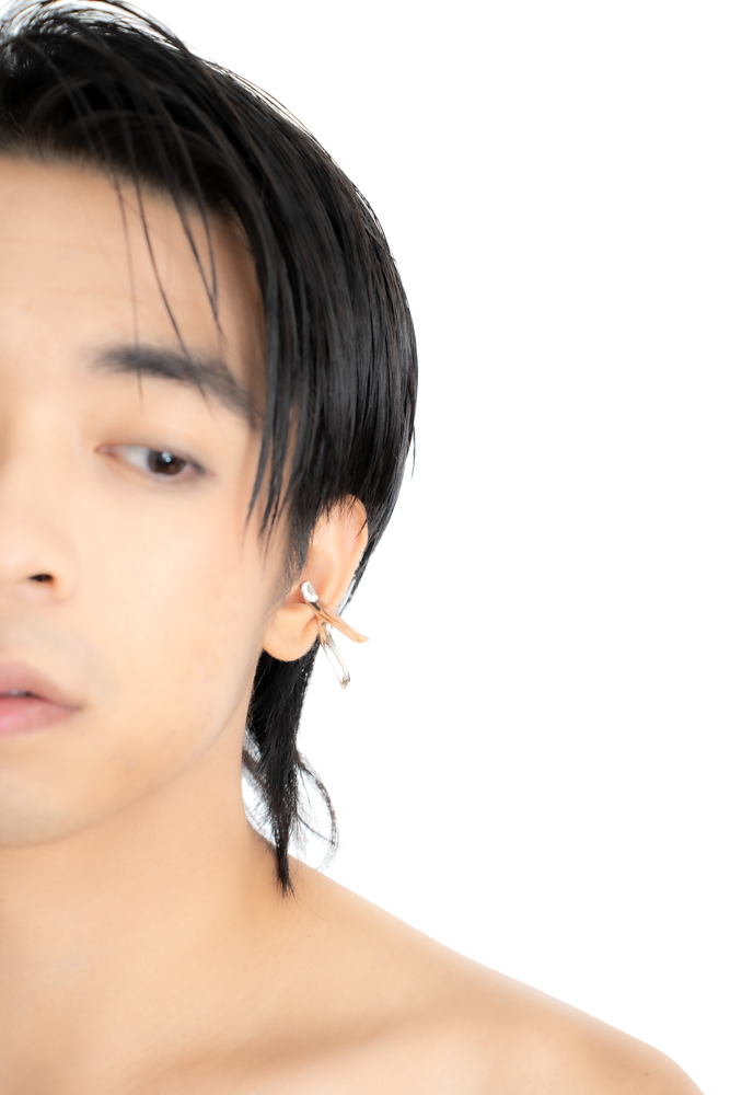 Worn on the ear, the M Valley Arch curves like a suspended bridge between digital and physical worlds, echoing the transient nature of connection. More than a piece of jewellery, it holds Alvin’s emotions—his silent goodbye, his lingering presence, and the unspoken bond that remains even in parting.