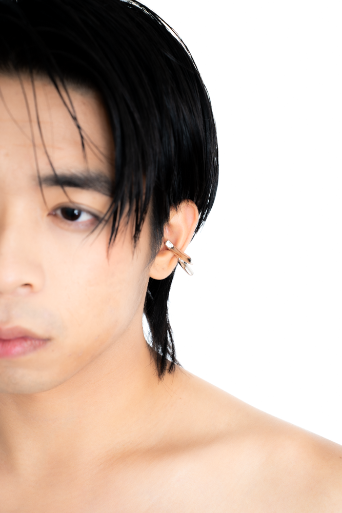 Worn on the ear, the M Valley Arch curves like a suspended bridge between digital and physical worlds, echoing the transient nature of connection. More than a piece of jewellery, it holds Alvin’s emotions—his silent goodbye, his lingering presence, and the unspoken bond that remains even in parting.