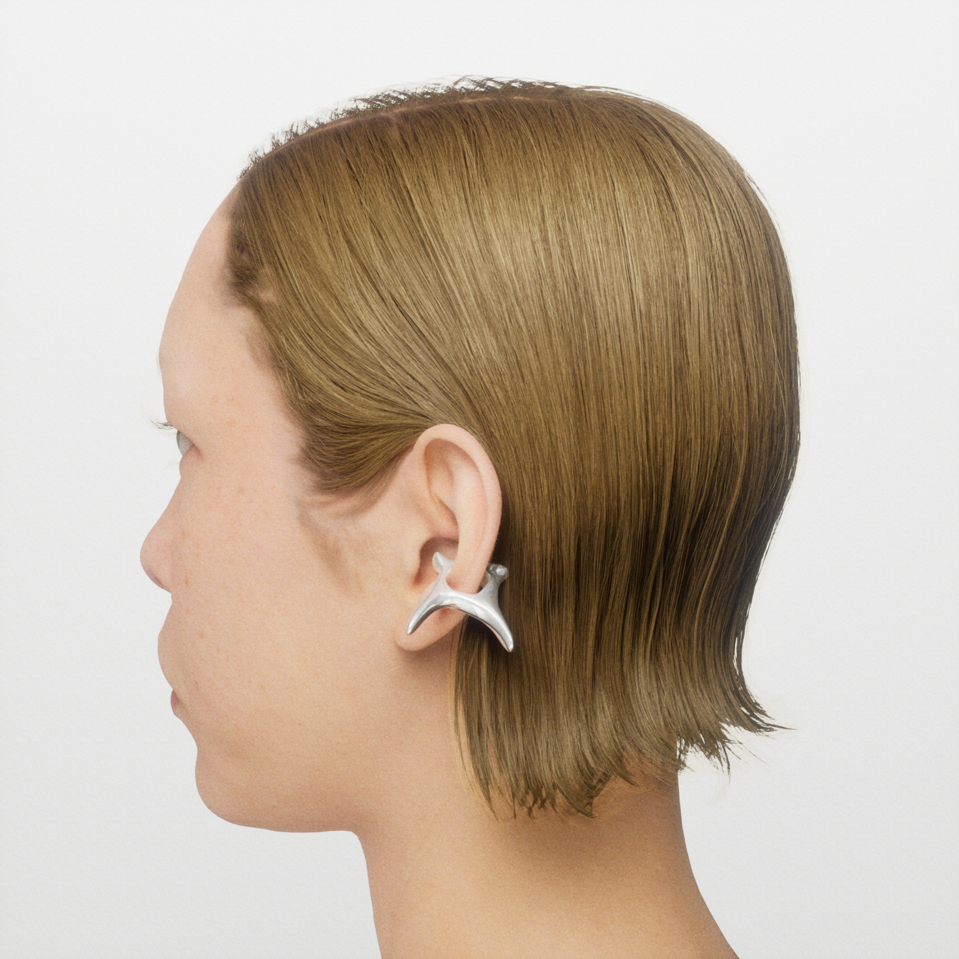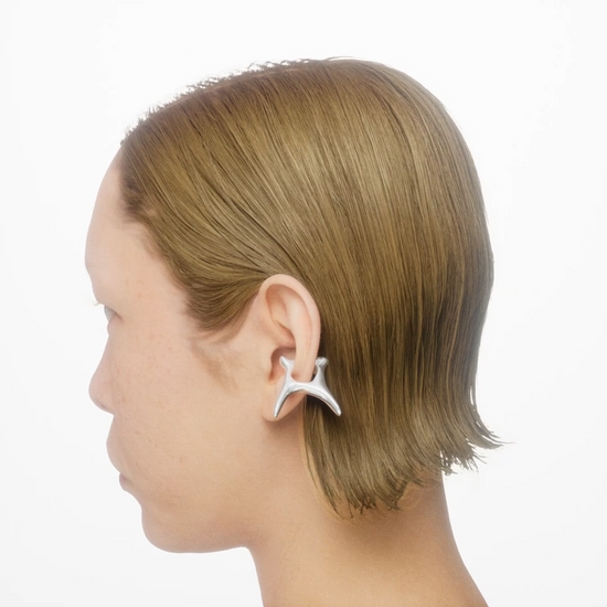 The ear cuffs are worn around the ear, their sweeping, organically growing shapes resemble a suspended bridge between the digital and physical worlds, echoing both the digital world and physical nature. More than wearable art pieces, each piece holds Alvin and Jane’s memories and emotions, their desires, their dreams, and the uncertainty of their future.