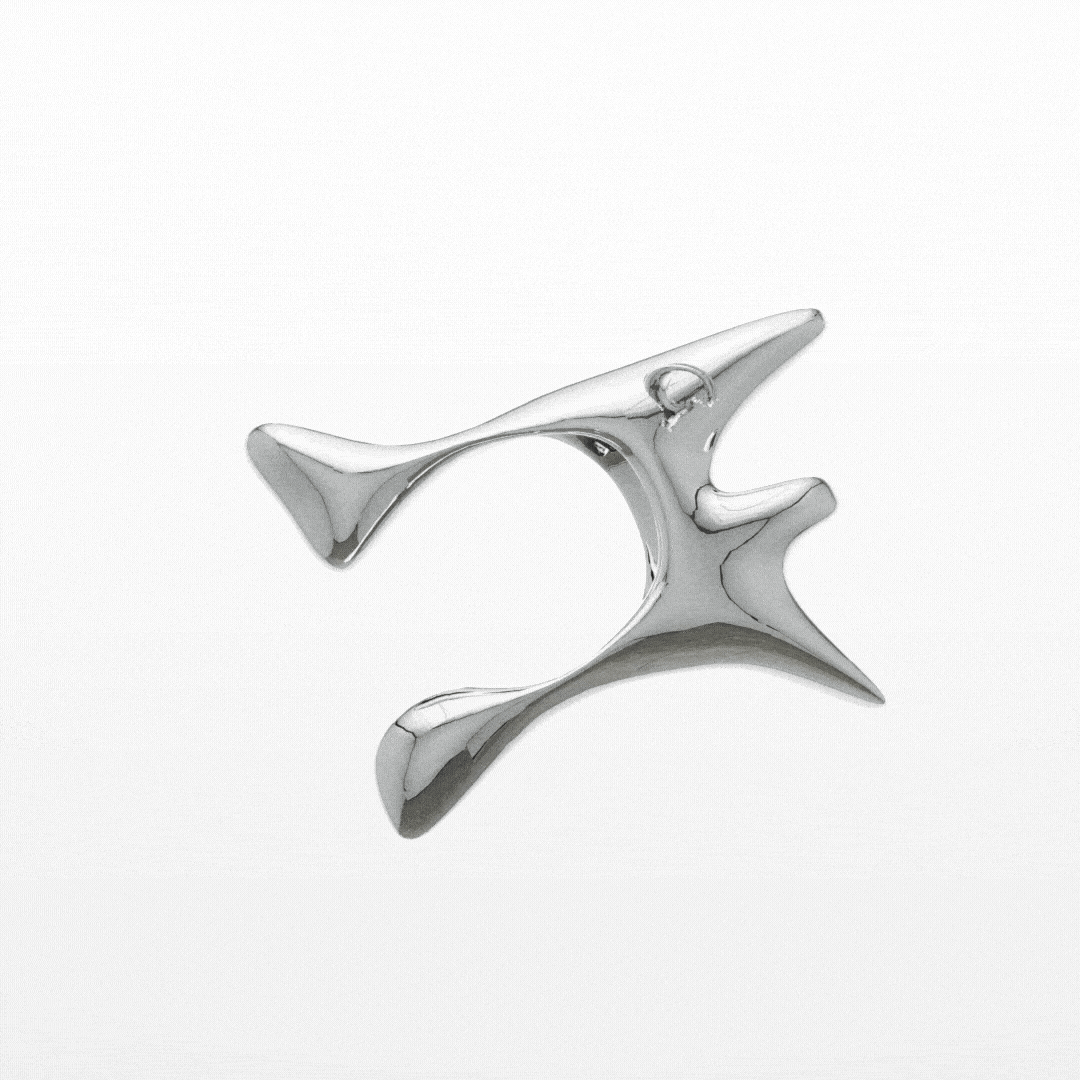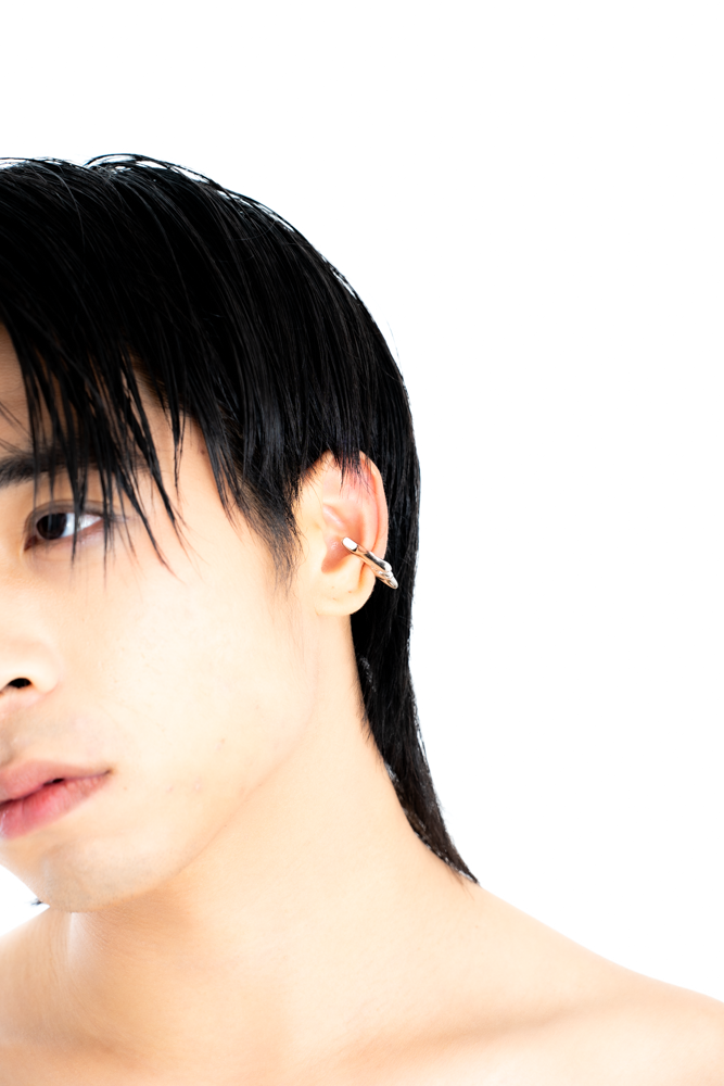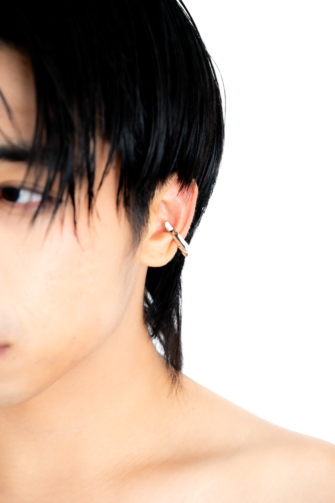 The M Valley Arch ear cuff is a sculptural form born from a celestial discovery in the digital world of M Valley. Inspired by a mysterious arc found in the sky—an ever-shifting structure of energy—it connects the world’s galaxy in constant rotation. This form is first seen by the Octopus Teacher, a digital monster and guide to Alvin, who recognises it as a distorted echo of nature, alive and in motion.