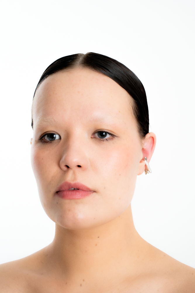 Worn on the ear, the M Valley Arch curves like a suspended bridge between digital and physical worlds, echoing the transient nature of connection. More than a piece of jewellery, it holds Alvin’s emotions—his silent goodbye, his lingering presence, and the unspoken bond that remains even in parting.