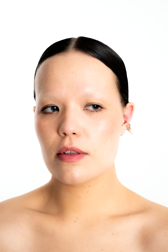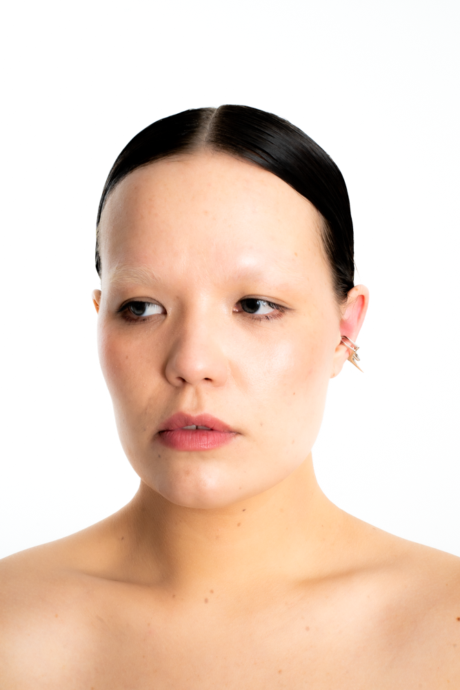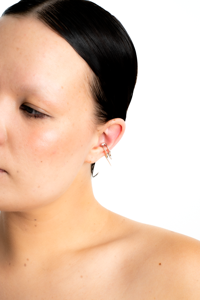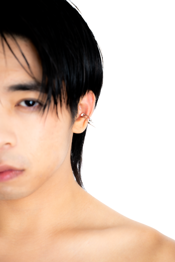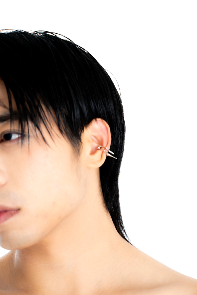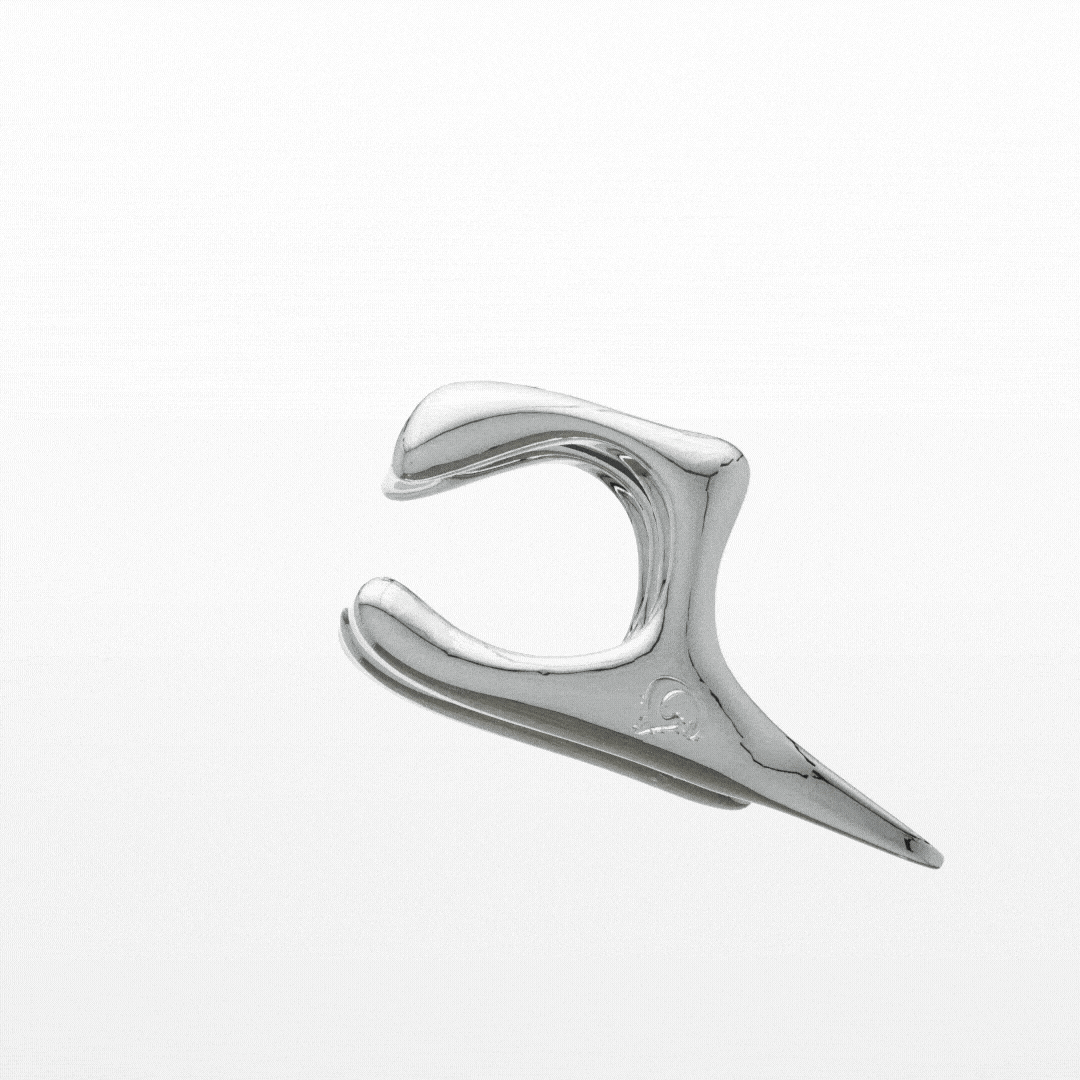 The M Valley Arch ear cuff is a sculptural form born from a celestial discovery in the digital world of M Valley. Inspired by a mysterious arc found in the sky—an ever-shifting structure of energy—it connects the world’s galaxy in constant rotation. This form is first seen by the Octopus Teacher, a digital monster and guide to Alvin, who recognises it as a distorted echo of nature, alive and in motion.