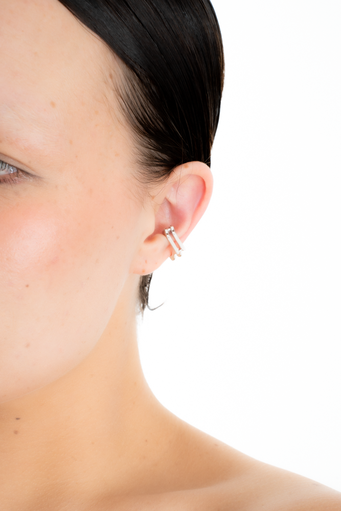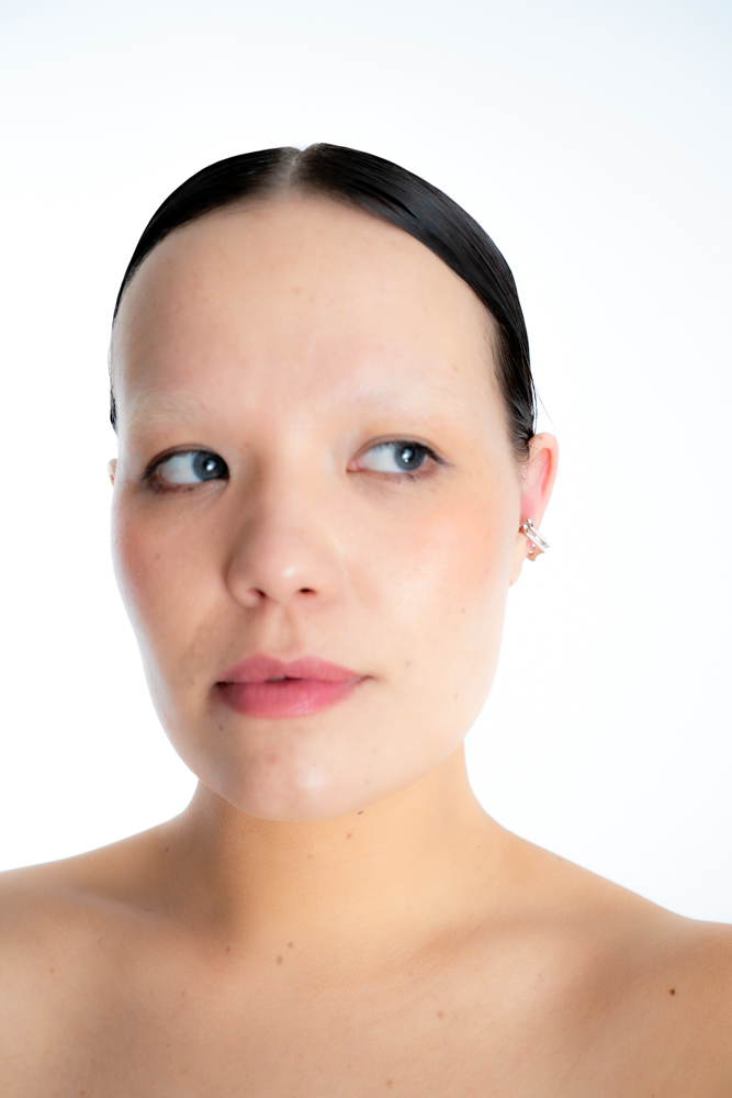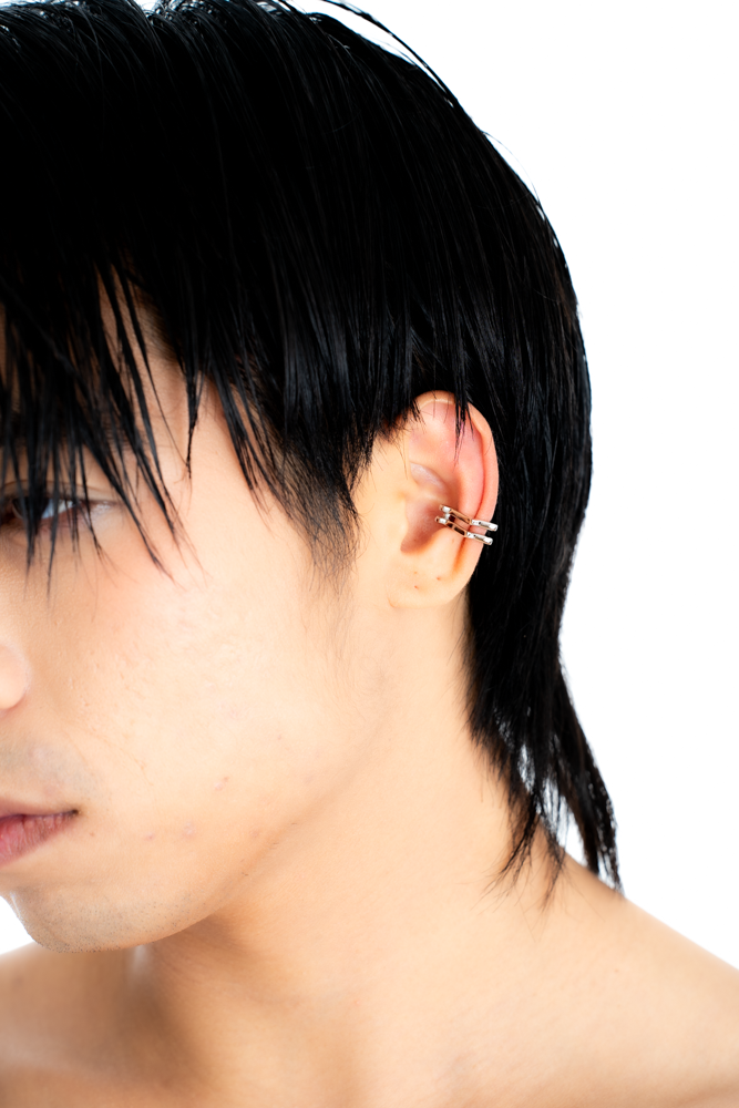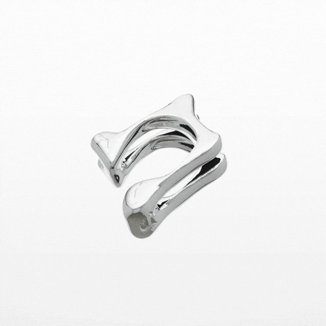 The M Valley Arch ear cuff is a sculptural form born from a celestial discovery in the digital world of M Valley. Inspired by a mysterious arc found in the sky—an ever-shifting structure of energy—it connects the world’s galaxy in constant rotation. This form is first seen by the Octopus Teacher, a digital monster and guide to Alvin, who recognises it as a distorted echo of nature, alive and in motion.
