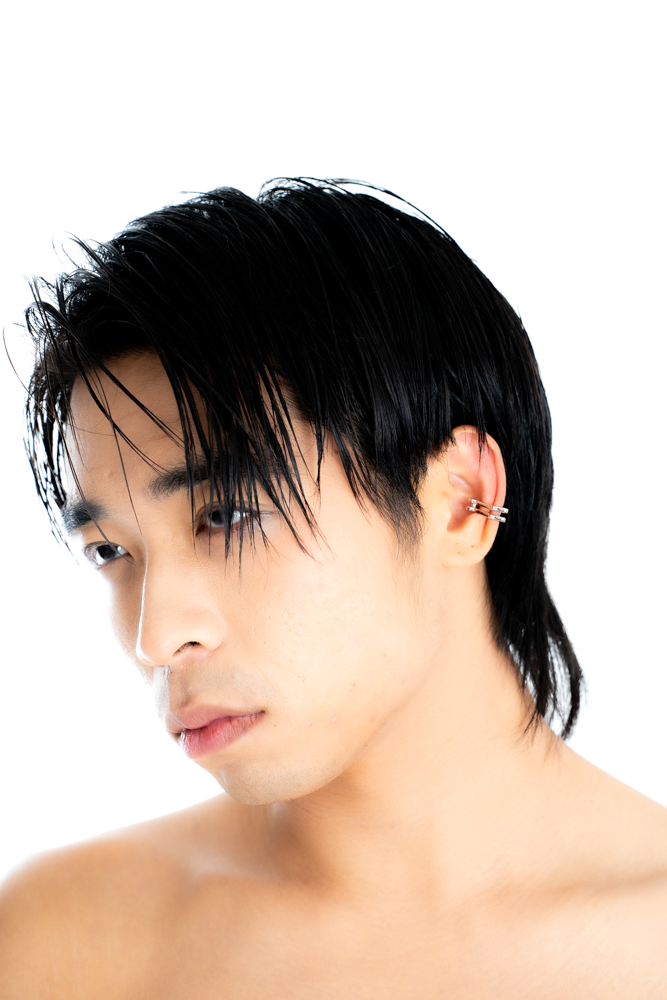 Worn on the ear, the M Valley Arch curves like a suspended bridge between digital and physical worlds, echoing the transient nature of connection. More than a piece of jewellery, it holds Alvin’s emotions—his silent goodbye, his lingering presence, and the unspoken bond that remains even in parting.