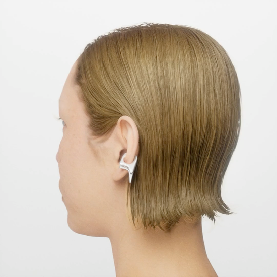 The ear cuffs are worn around the ear, their sweeping, organically growing shapes resemble a suspended bridge between the digital and physical worlds, echoing both the digital world and physical nature. More than wearable art pieces, each piece holds Alvin and Jane’s memories and emotions, their desires, their dreams, and the uncertainty of their future.