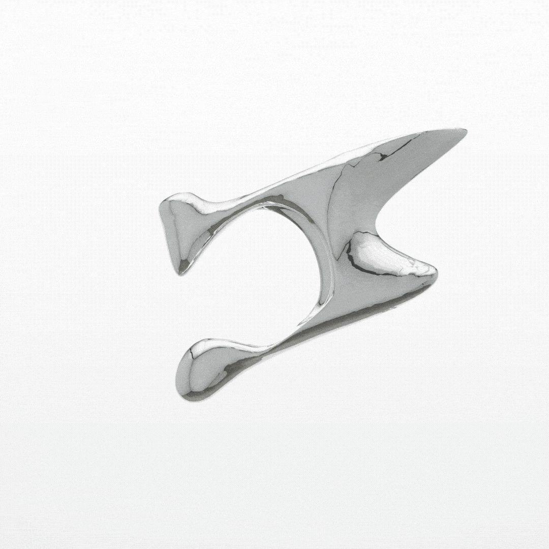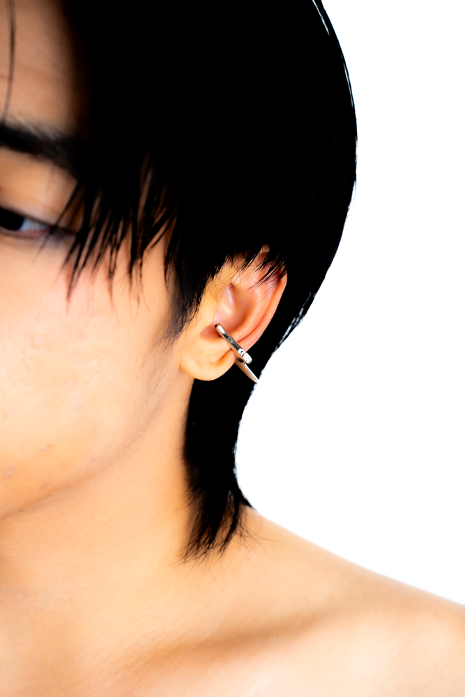 The M Valley Arch ear cuff is a sculptural form born from a celestial discovery in the digital world of M Valley. Inspired by a mysterious arc found in the sky—an ever-shifting structure of energy—it connects the world’s galaxy in constant rotation. This form is first seen by the Octopus Teacher, a digital monster and guide to Alvin, who recognises it as a distorted echo of nature, alive and in motion.