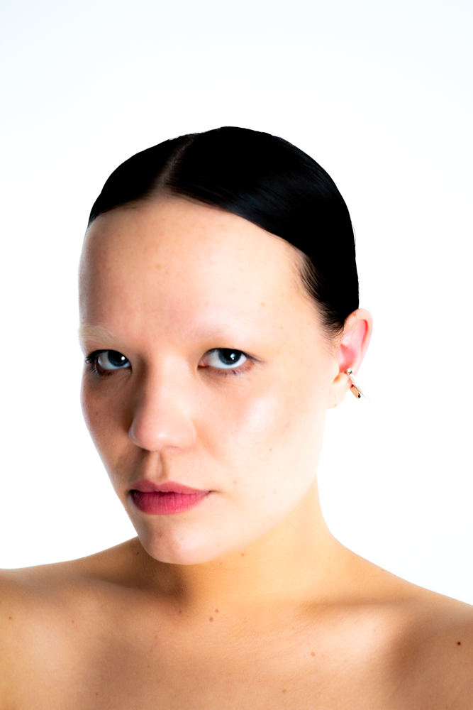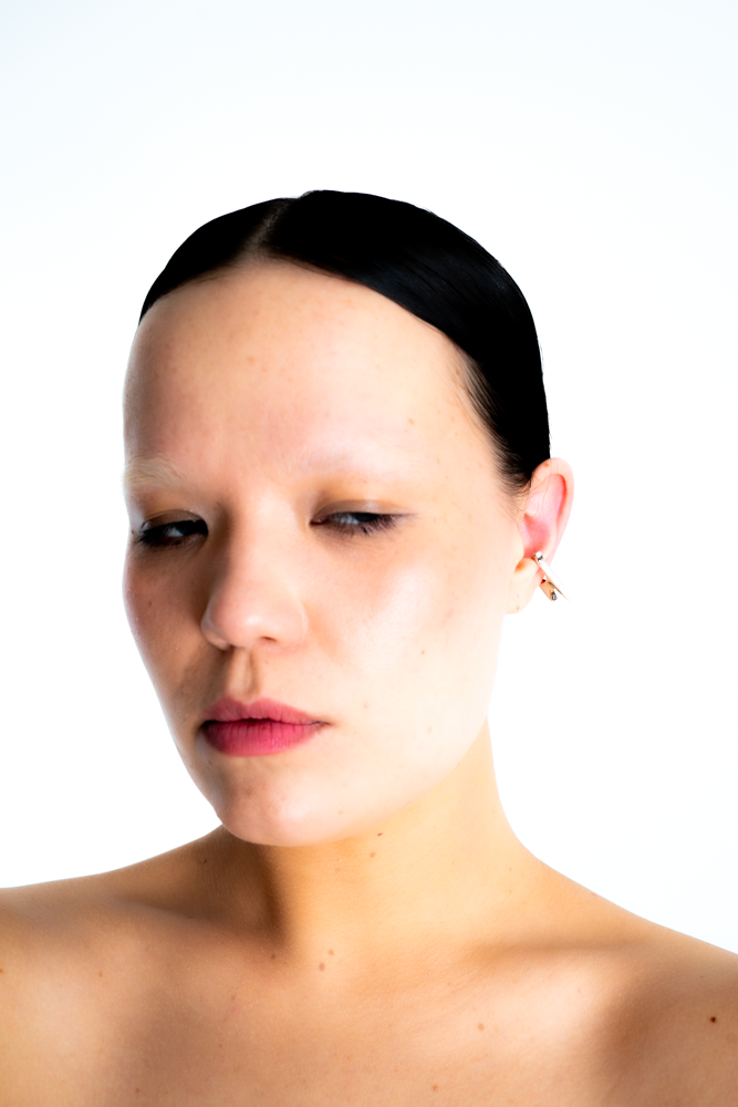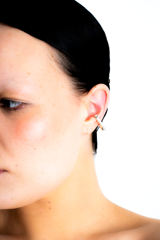 Worn on the ear, the M Valley Arch curves like a suspended bridge between digital and physical worlds, echoing the transient nature of connection. More than a piece of jewellery, it holds Alvin’s emotions—his silent goodbye, his lingering presence, and the unspoken bond that remains even in parting.